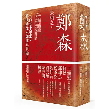 這三本一套的歷史小說《鄭森》,是台灣少見的長篇歷史小說。年輕的作者朱和之1975年生,現年也才四十三歲,不過這套小說的寫作風格卻非常老,以章回小說方式撰寫,全套書共三十回,文字非常古典,常穿插許多地理環境、飲茶茶藝、文人書法、酒館歌妓文化、軍事武器、朝廷官儀的細節描述,可見作者的歷史考據功力之深。
